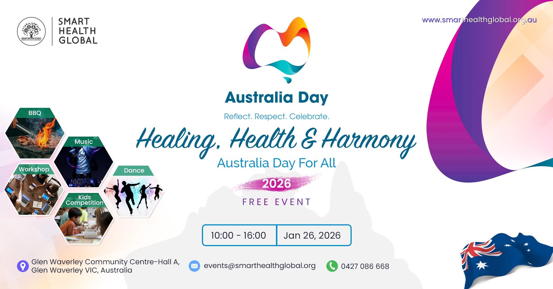 Australia Day Celebration: Reflect. Respect. Celebrate. “Healing, Health & Harmony: Australia Day for All” Join us on Australia Day 2026 for Healing, Health & Harmony – Australia Day for All, a free community wellbeing event celebrating unity, culture, and connection. This vibrant community gathering will feature: 🍔 Free BBQ and community picnic 🎶 Live music […]